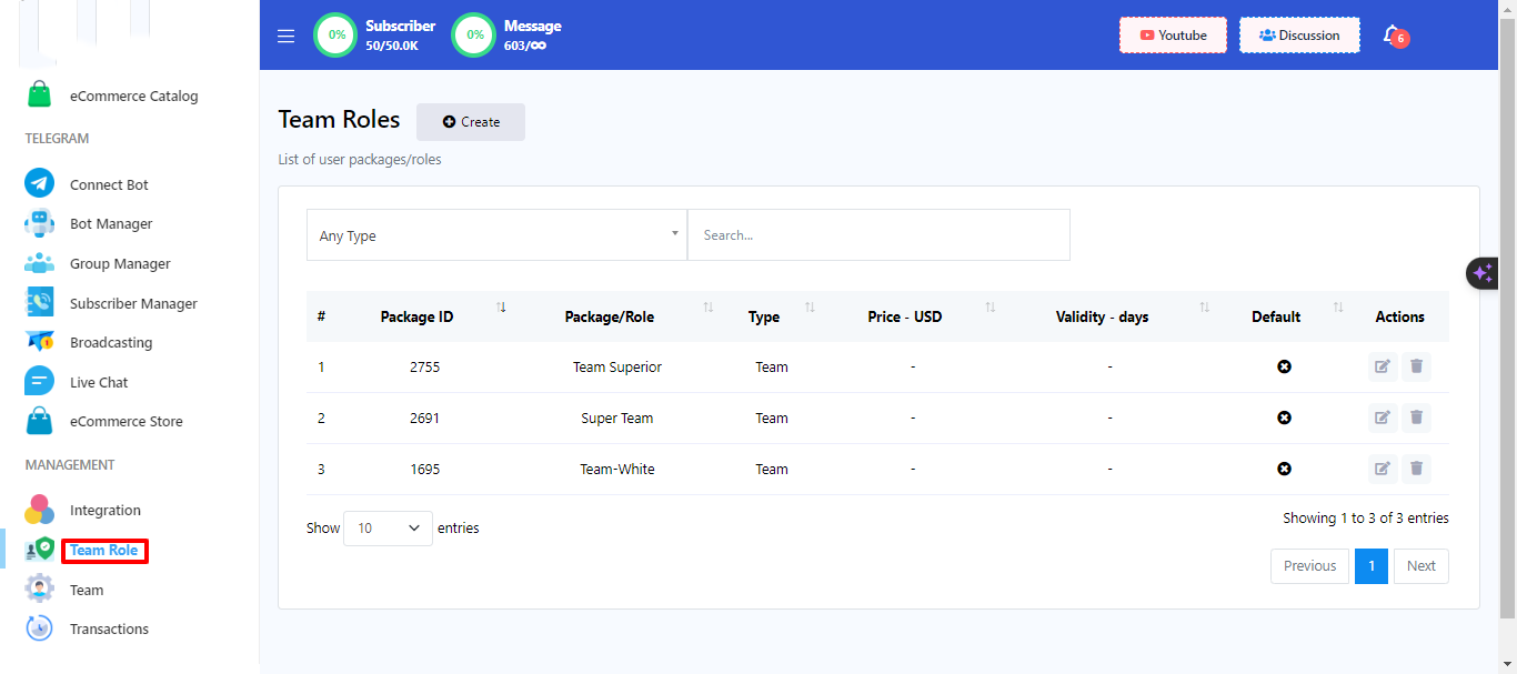 En nuestra plataforma de chatbot, un rol de equipo define las tareas específicas asignadas a cada equipo que gestiona diferentes tareas. Un equipo puede estar compuesto por varios miembros. El proceso para añadir miembros al equipo se describe en la sección "Equipo" de nuestra plataforma. Para asignar tareas a los miembros del equipo, primero debe establecer un rol de equipo y luego asignar permisos para las tareas que desea que gestionen.