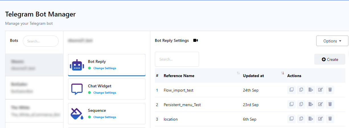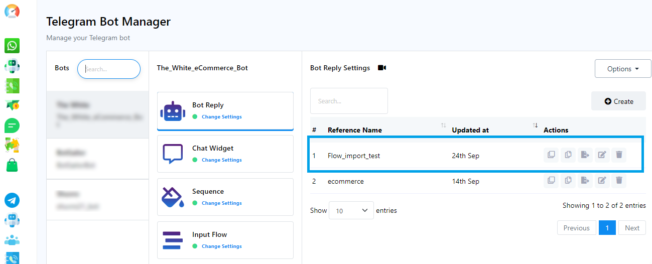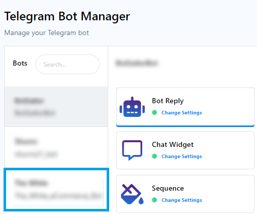 Tras la importación, revisa la sección "Respuesta del bot" del bot seleccionado en tu Administrador de Bots de Telegram. Tu lista de bots de usuario se actualizará según corresponda.