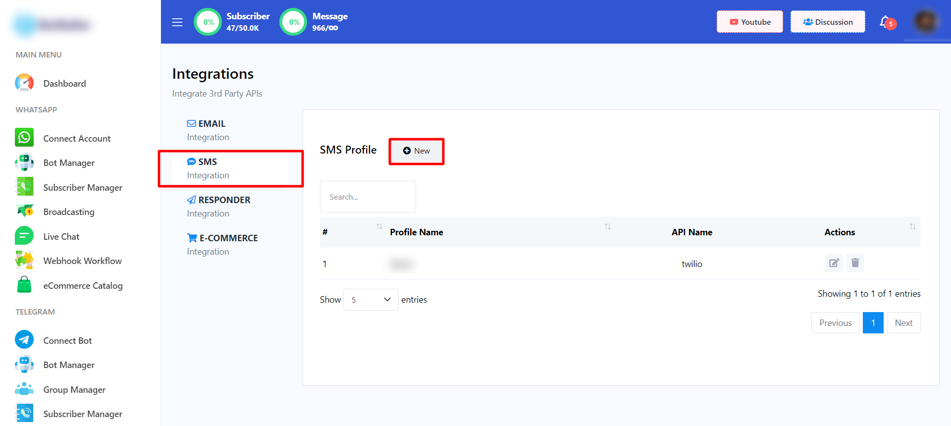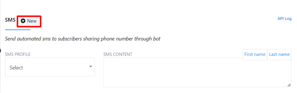 - Luego, haga clic en el botón "Nuevo" al lado del Perfil SMS.