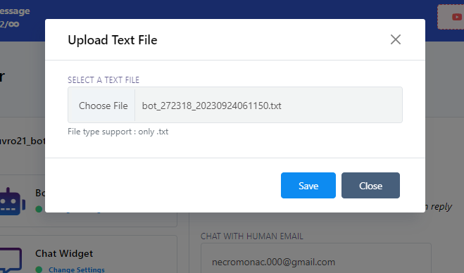 - Sube un archivo bot.txt utilizando la barra de carga proporcionada.