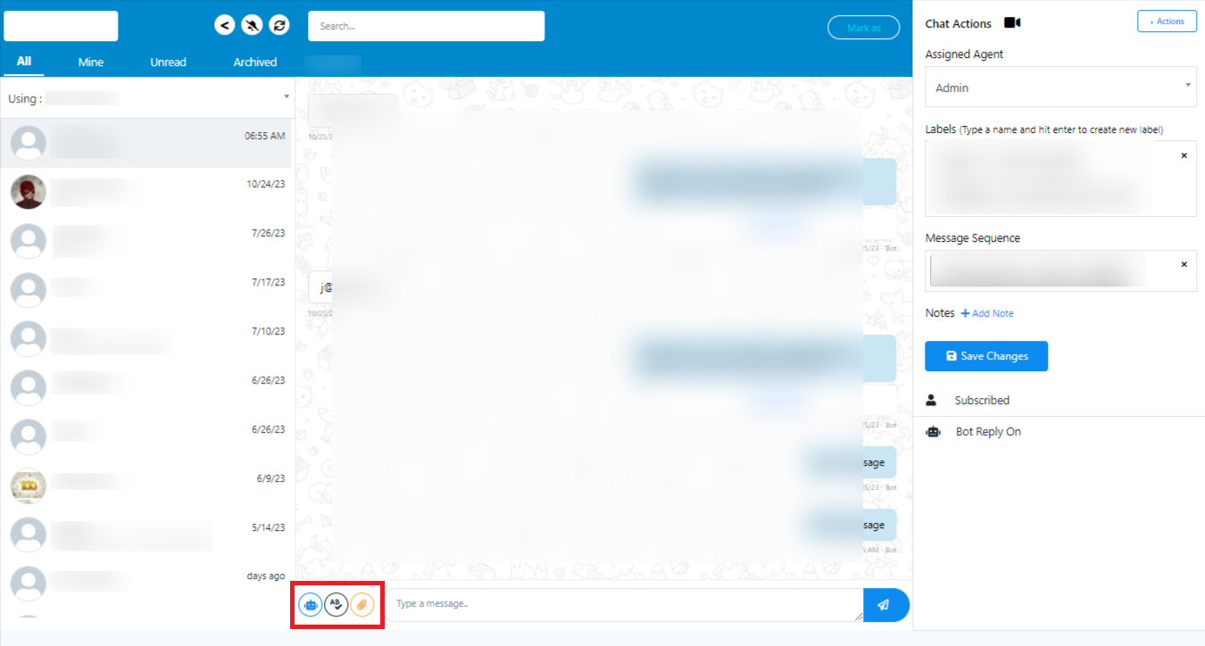 En el lado derecho de la ventana de mensajes, encontrará la sección "Acción de chat", que le proporciona varias acciones que puede aplicar durante sus interacciones de chat.