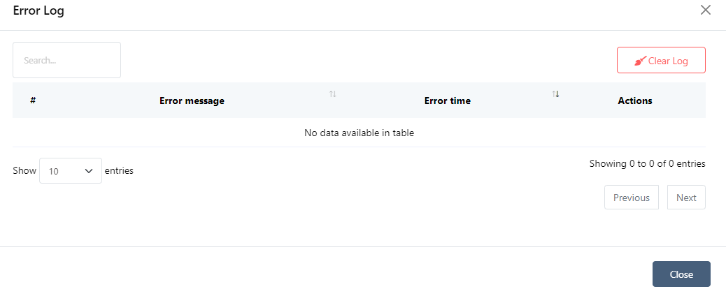 Puede acceder a los registros de errores del bot desde el botón "Opciones". Para borrar todos los registros de errores, simplemente haga clic en el botón "Borrar registro".