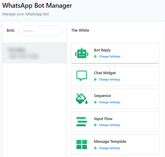 Para empezar, accede a la página del Administrador de Bots desde el Panel de Control. Haz clic en la opción "Configuración".
