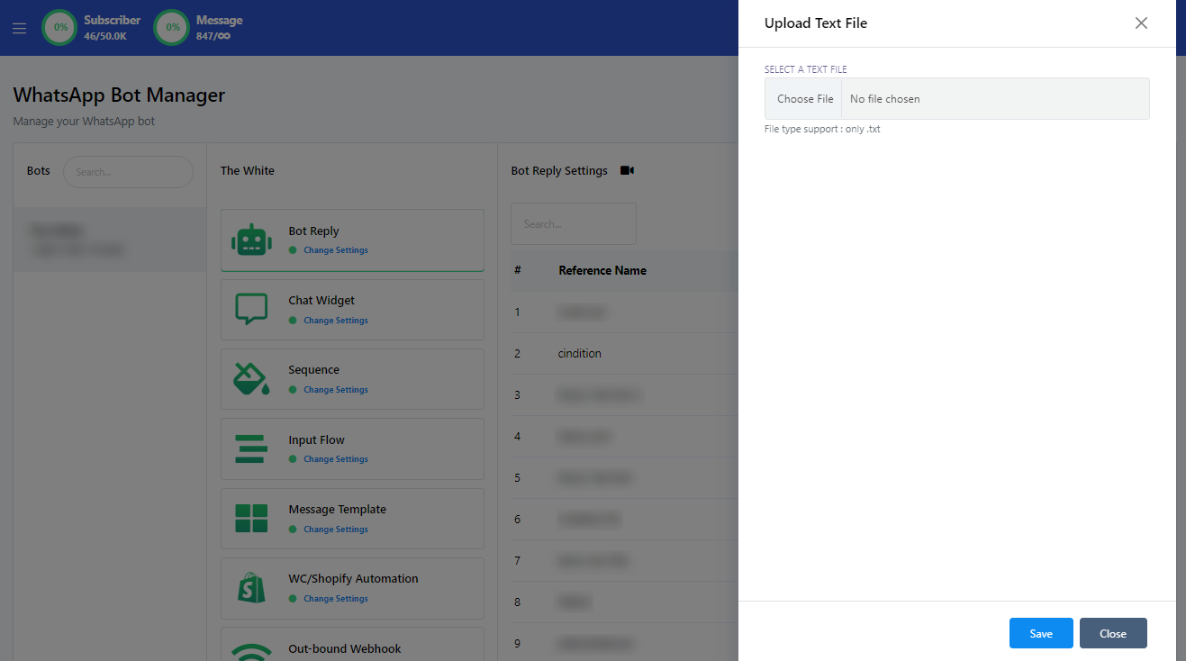 - Sube un archivo bot.txt utilizando la barra de carga proporcionada.