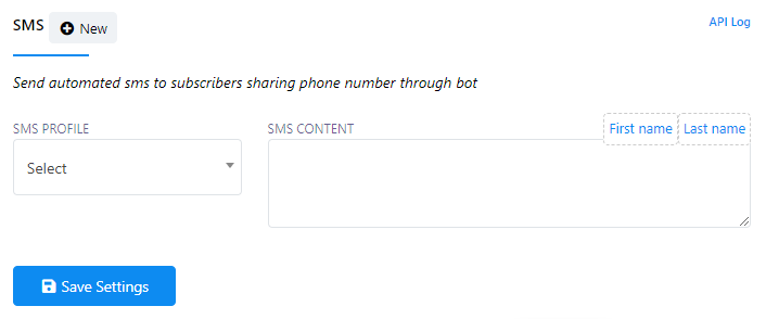 - Luego, haga clic en el botón "Nuevo" al lado del Perfil SMS.