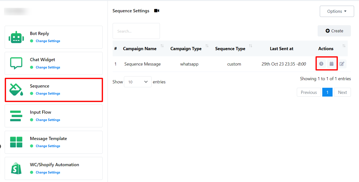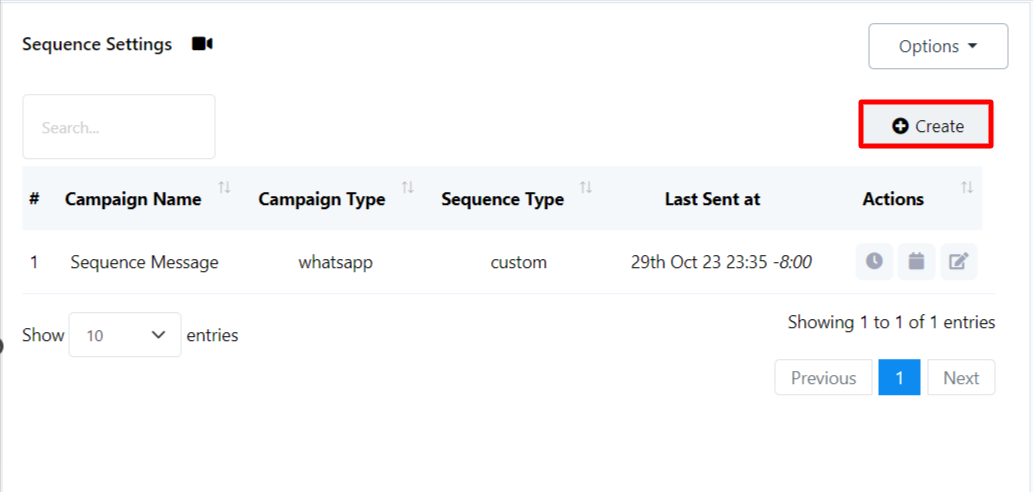 Crear una nueva campaña de mensajes de secuencia: También hay una opción para crear una nueva secuencia desde aquí. Para crear una nueva secuencia, simplemente haga clic en el botón "Crear".