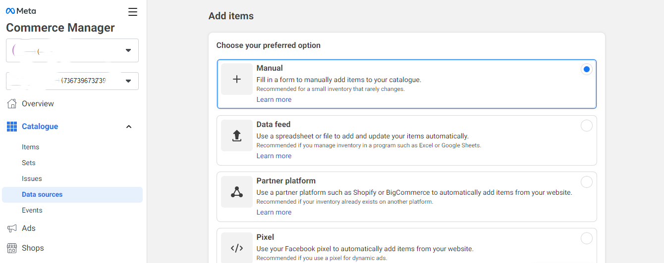 - Elija agregar productos manualmente.