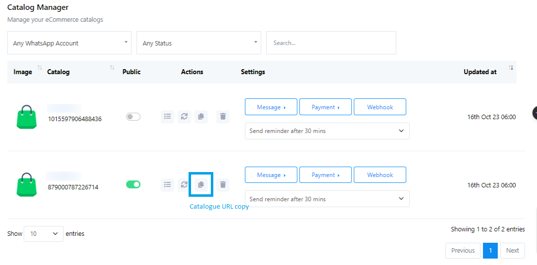 - Puede copiar la URL del catálogo para compartirla con sus usuarios.